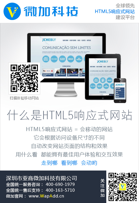 微加科技:全球领先HTML5响应式网站可视化建站平台 www.wapadd.cn!变革建站模式!终结行业痛点!颠覆传统思维!