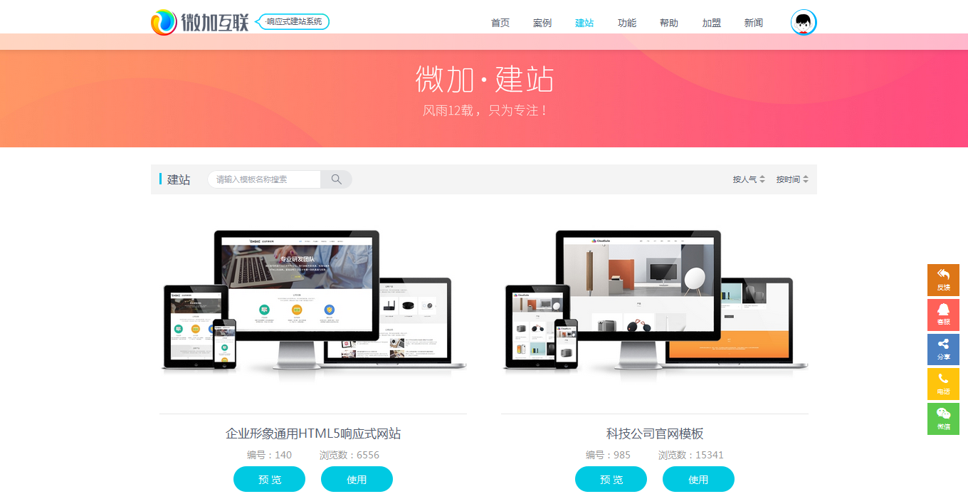 选择您感兴趣的网站模板,先预览看下效果,如果满意就点试用开始制作!