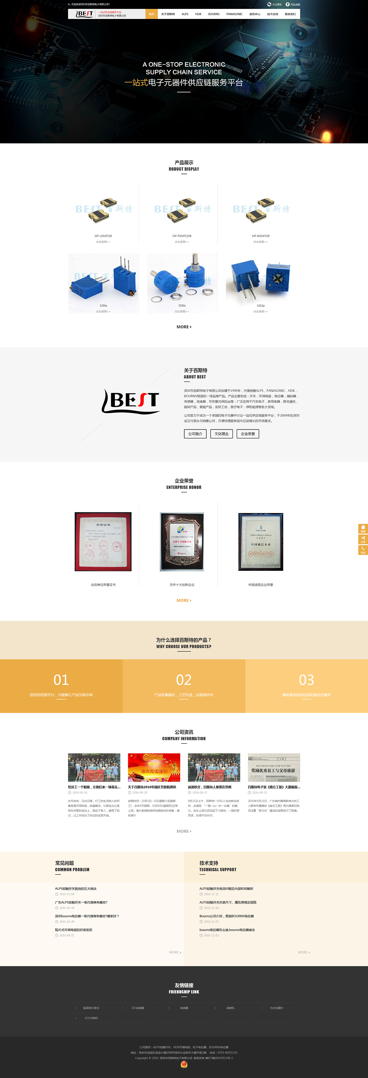 深圳市百斯特电子有限公司创建于1999年,代理销售日本HDK、 ALPS、PANASONIC、NOBLE、TOCOS, OMRON、美国BOURNS、韩国SEHWA等国际一线品牌产品。